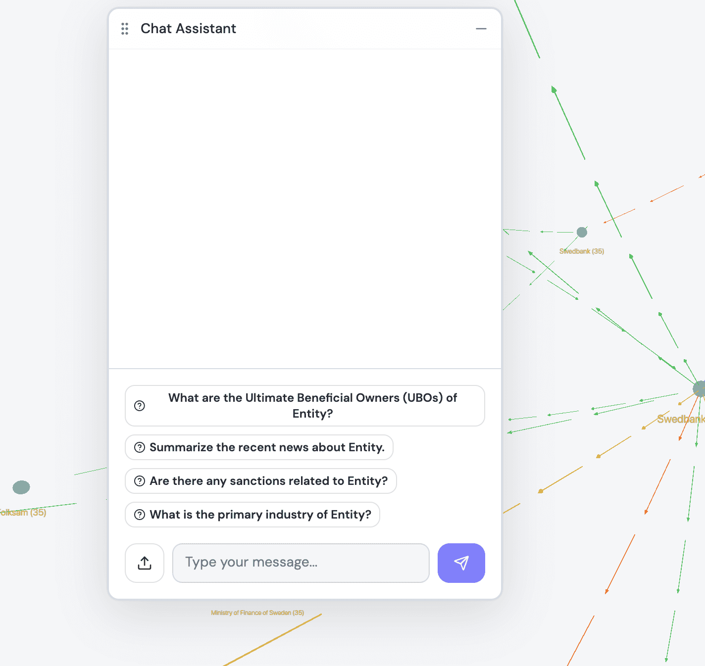 Erstellt Echtzeit-Netzwerkgrafiken, die Eigentum, Offenlegungen und Transaktionen verknüpfen.